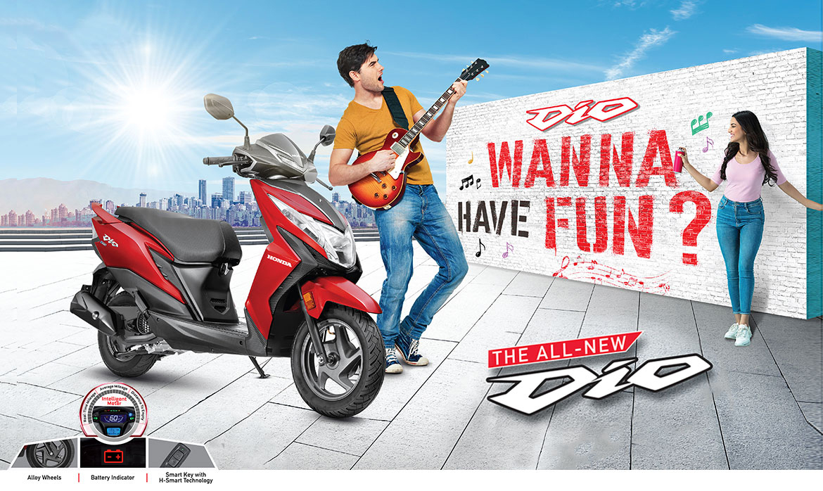 The new DIO is here. With a sportier look and aggressive design, it?s time to express your attitude in the streets. DIO your sporty side, DIO some thrills and then, ?Keep Dio?ing it?